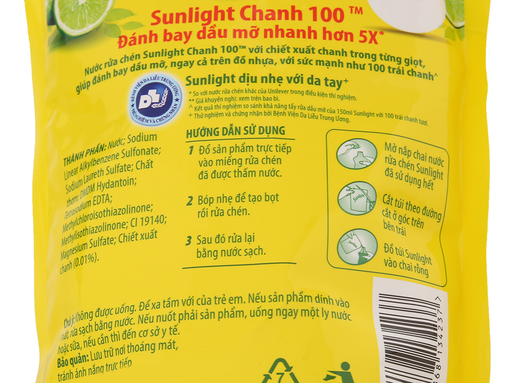 Sunlight với chiết xuất chanh tươi và muối khoáng tự nhiên, giúp đánh bay dầu mỡ với sức mạnh như 100 trái chanh.