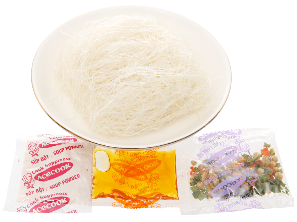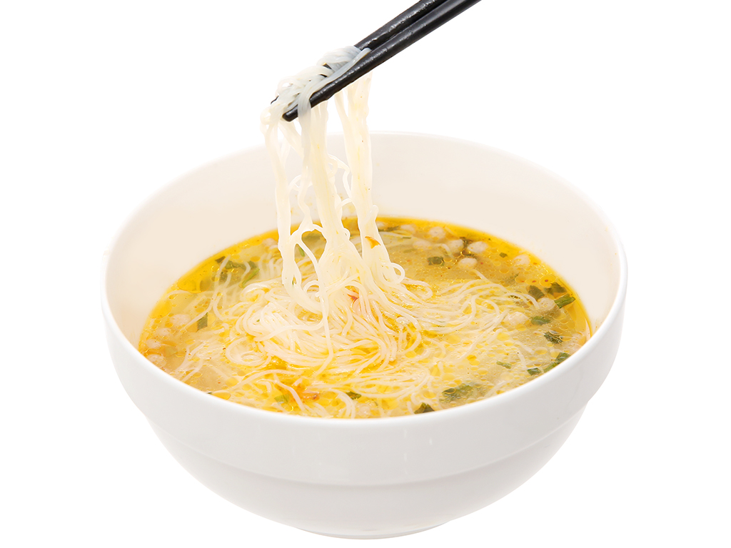 Thành phần Gạo, tinh bột, muối, chất nhũ hoá, dầu tinh luyện, giả thịt (đậu nành), chất điều vị, cà rốt, hành lá, ngò, hương heo...